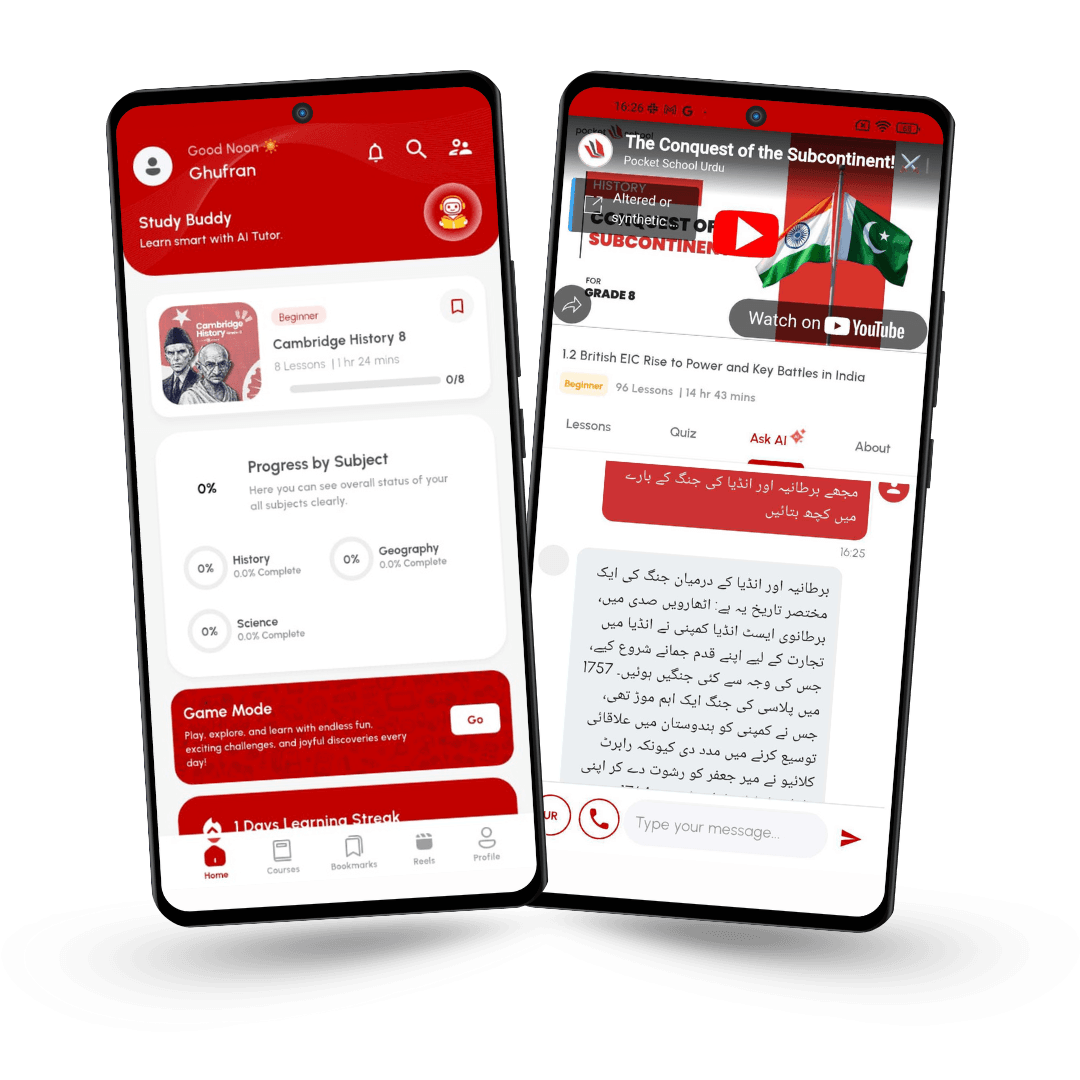 Pocket School is designed specifically for students from Grade 6 to Grade 10, including O-Level and IGCSE learners. Our courses follow both the National Curriculum of Pakistan and Cambridge International Education, ensuring that every student receives content aligned with their academic pathway.